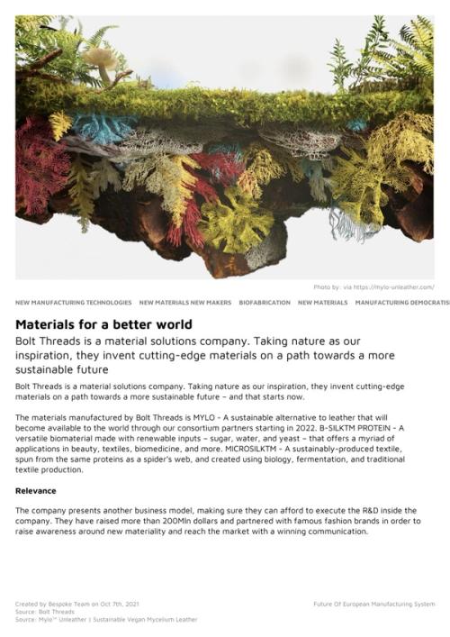 The world is full of early signs of change, and scanning the horizon will lead to relevant future directions, developments, new behaviours, new business models, technology, values, and audiences happening. This is an overview and knowledge library, especially curated for EIT Manufacturing with over 100 signals of change, as examples of emerging manifestations towards the future of manufacturing that can help to inform innovation, strategy, and decision-making.
